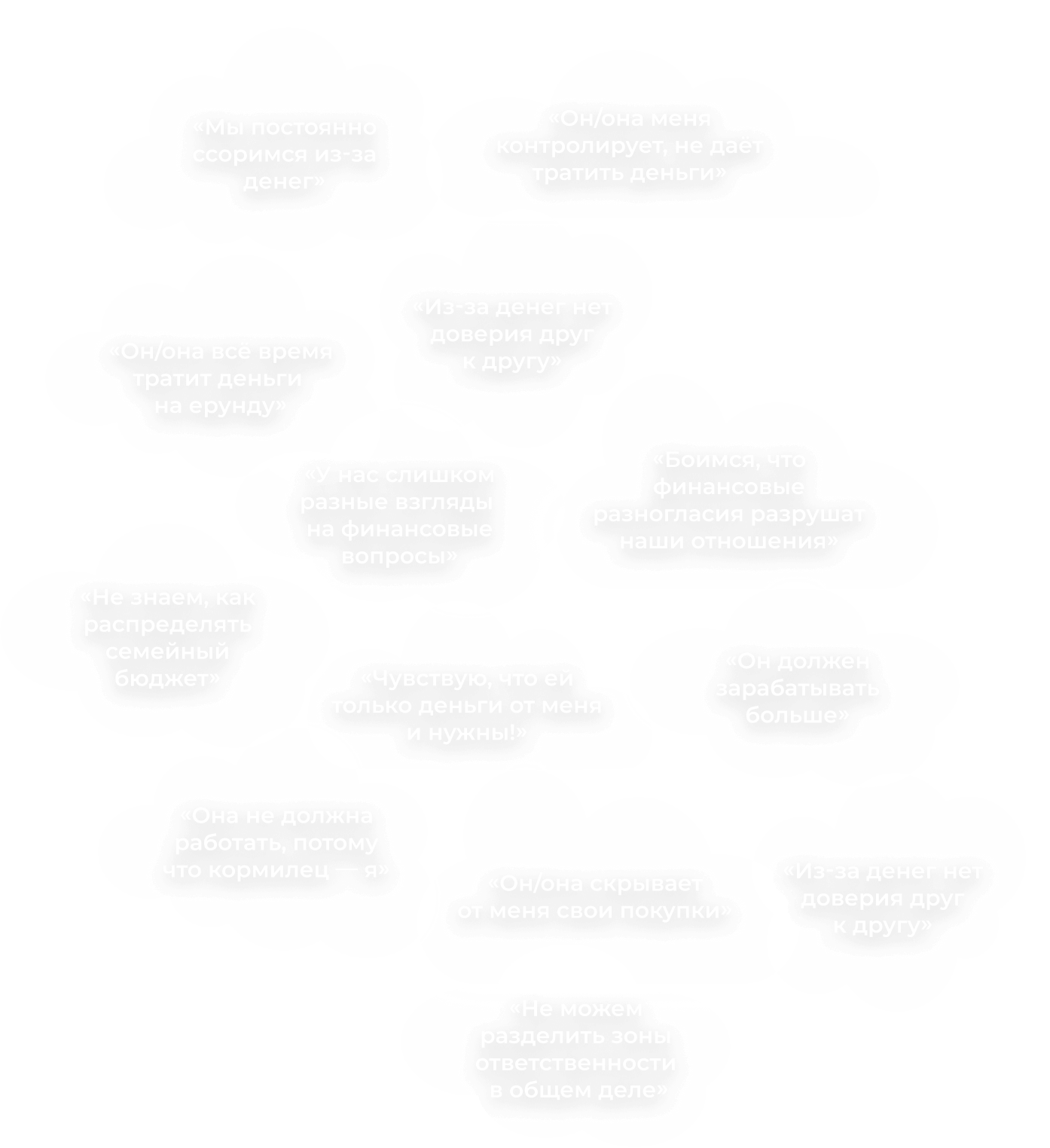 За спорами о тратах и финансовых решениях стоят наши потребности, познавательные страхи и ожидания, непроработанные травмы, сознательные убеждения, представления о ценностях и приоритетах, психологические комплексы и т. д. — другими словами, целый «багаж» отношений с деньгами, который каждый привносит в пару.