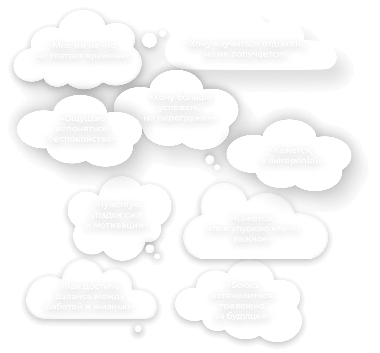 Внешне у клиента «всё замечательно» — престижная работа, достойный доход, интересные увлечения. Но внутри нарастает тревожное чувство, что всё это — лишь бесконечная гонка, которая лишена смысла и не приносит удовлетворения. Пазл вроде бы сложился, но радости от получившейся картинки — нет.